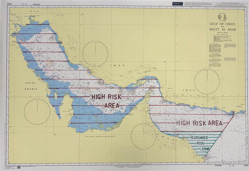 Map: IBF-designated High Risk Area covering the Strait of Hormuz and surrounding waters.